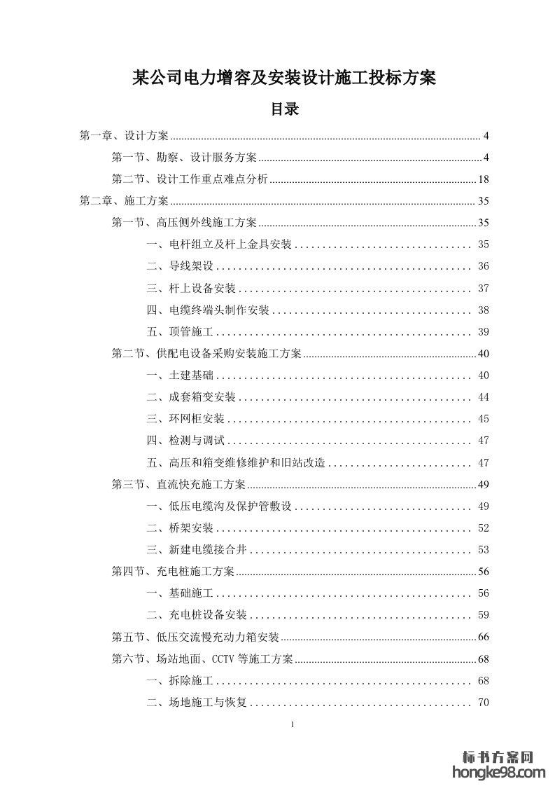 标题:某公司电力增容及安装设计施工标书投标方案(117页)