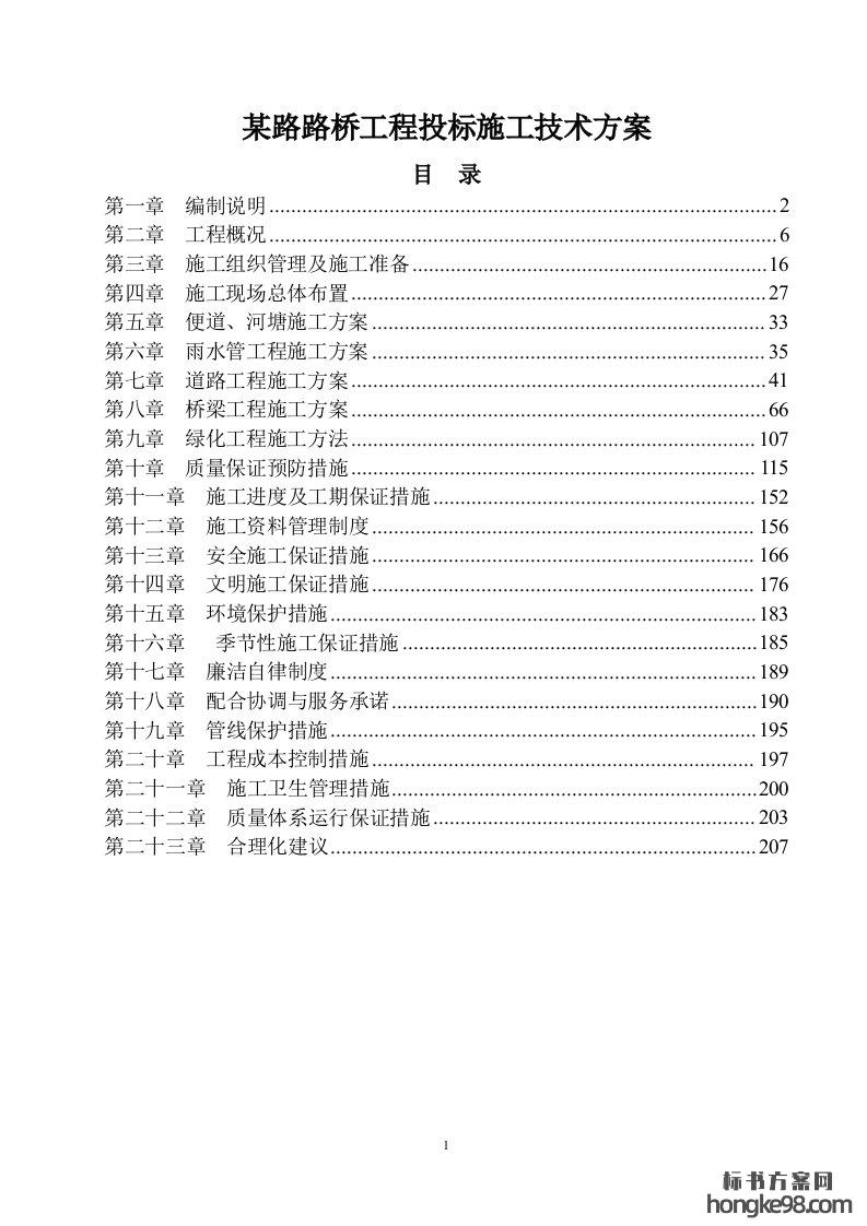 标题:某路路桥工程标书投标施工技术方案(211页)