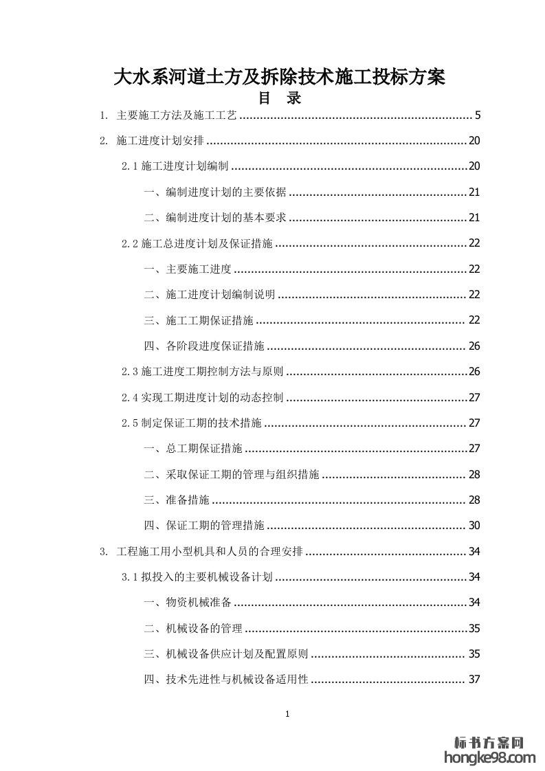标题:大水系河道土方及拆除技术施工标书投标方案(107页)