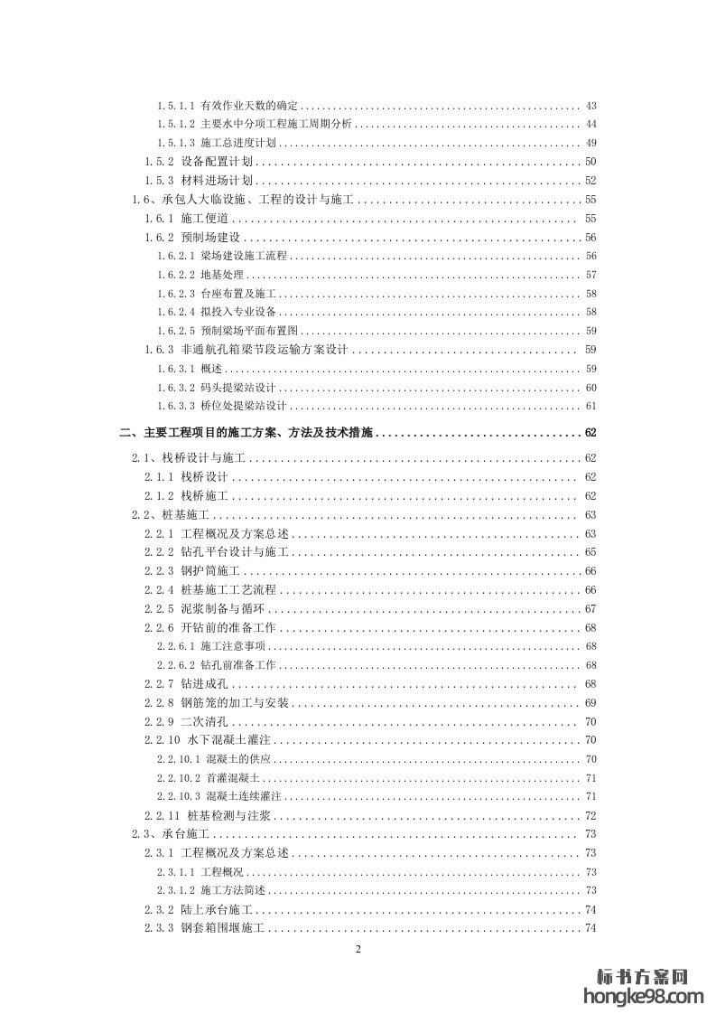 标题:某大桥及接线工程、栈桥设计与施工、节段梁制作施工标书投标方案(218页)