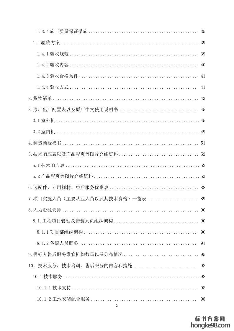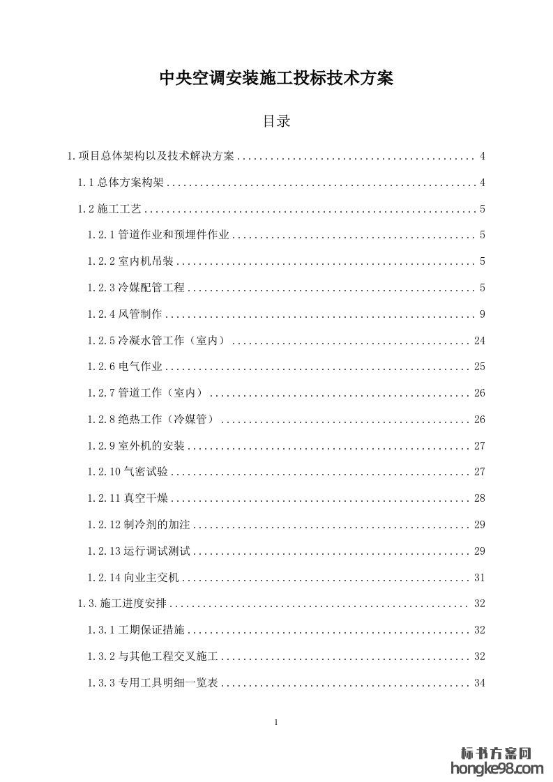 标题:中央空调安装施工标书投标技术方案(125页)