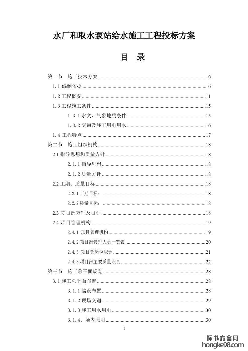 标题:水厂和取水泵站给水施工工程标书投标方案(290页)