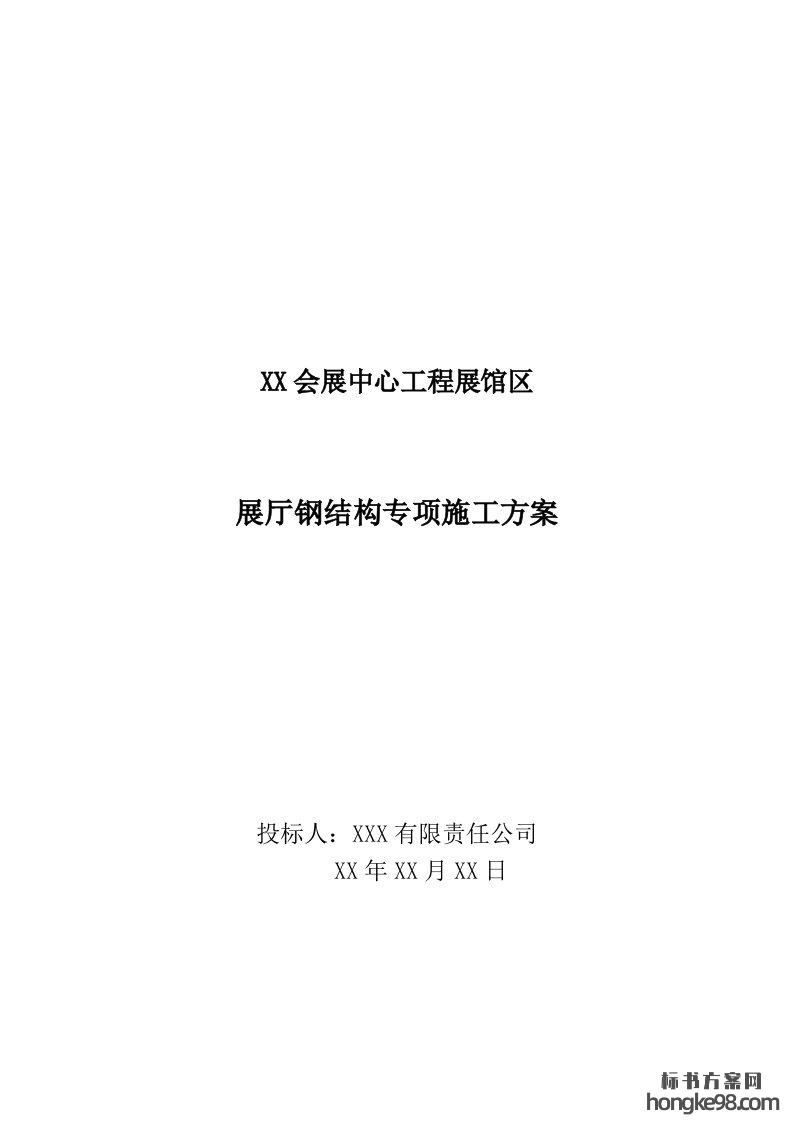 标题:会展中心工程展厅钢结构施工标书投标技术方案(278页)