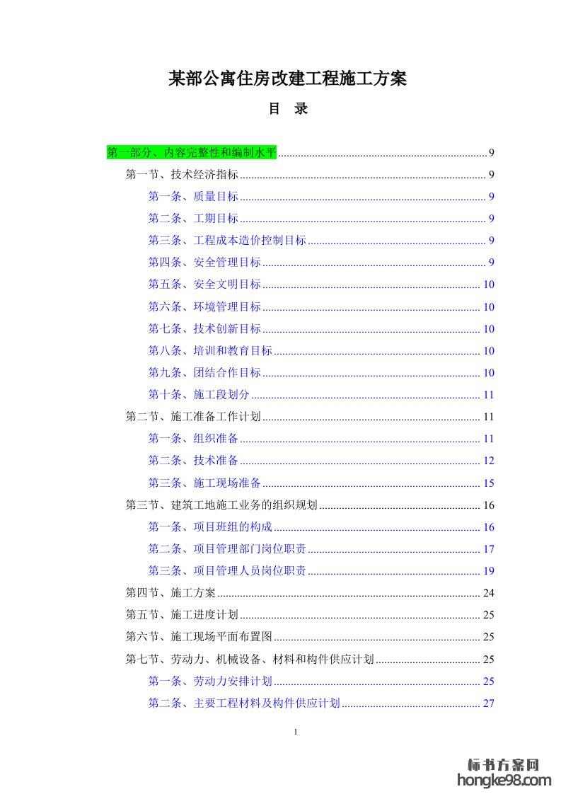 标题:某部公寓住房改建工程施工方案(302页)