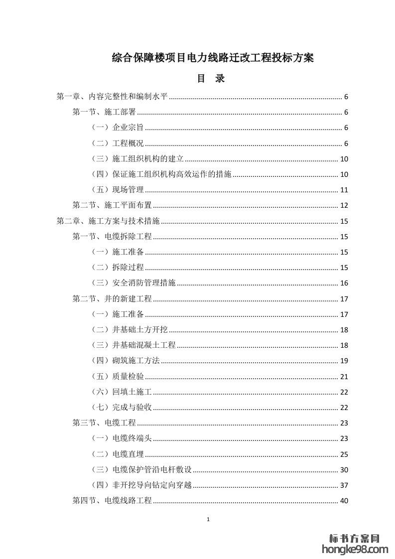 标题:综合保障楼项目电力线路迁改工程标书投标方案(212页)