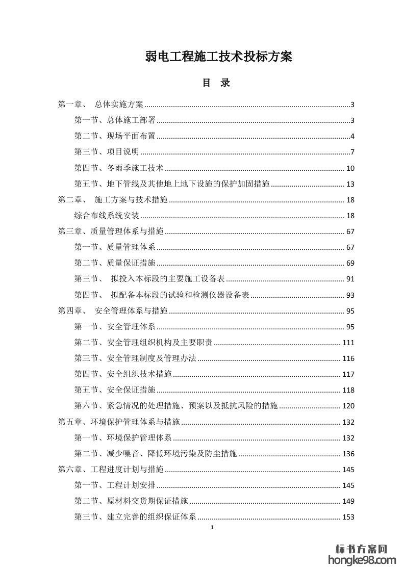 标题:弱电工程施工技术标书投标方案(185页)