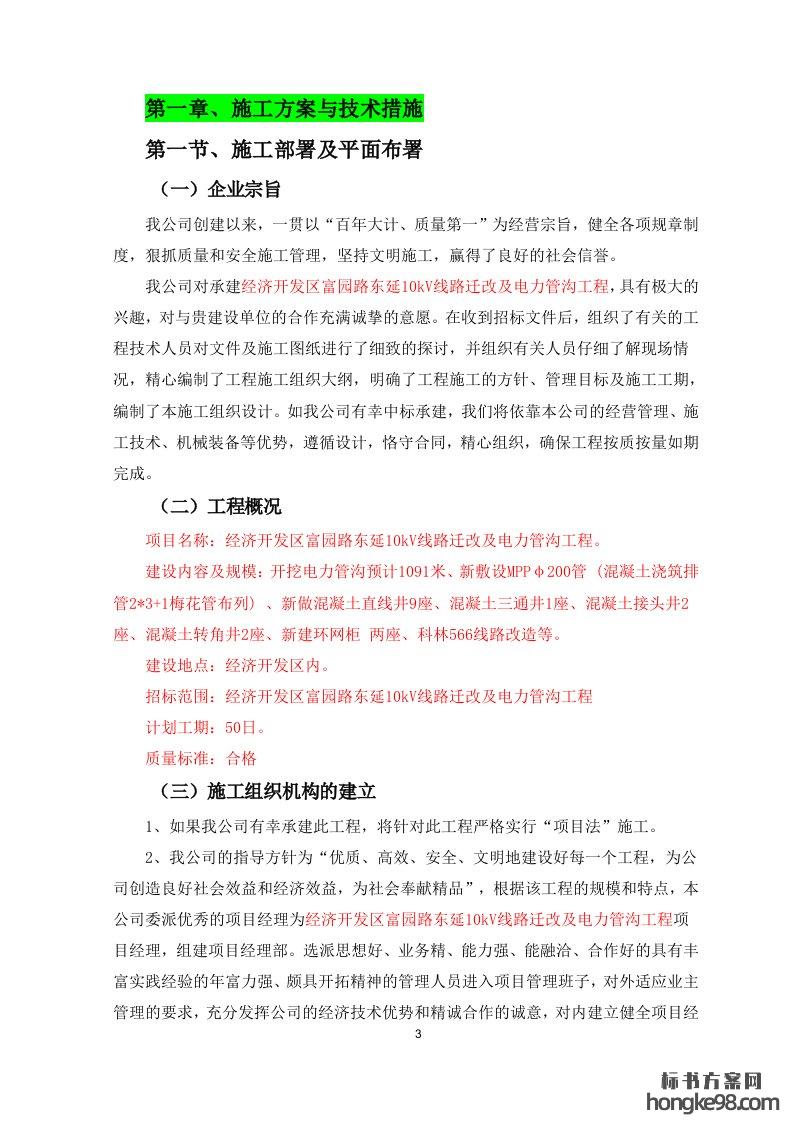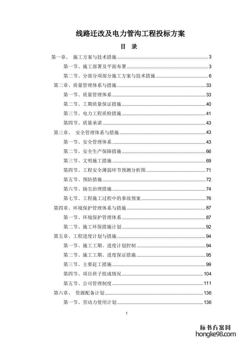 标题:线路迁改及电力管沟工程标书投标方案(146页)
