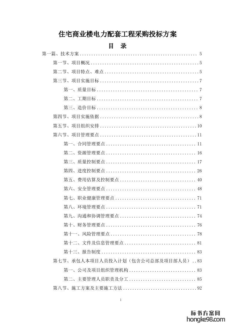 标题:住宅商业楼电力配套工程采购标书投标方案(243页)