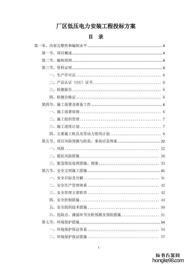 标题:厂区低压电力安装工程标书投标方案(125页)