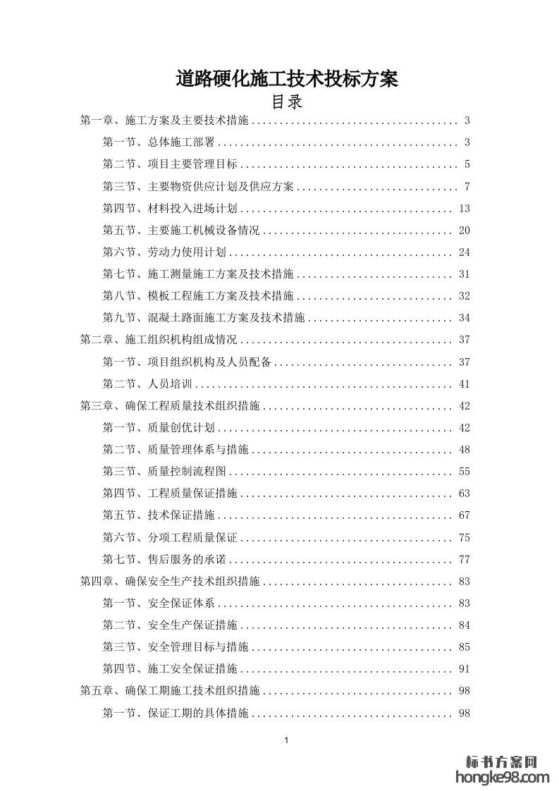标题:道路硬化施工技术标书投标方案(164页)