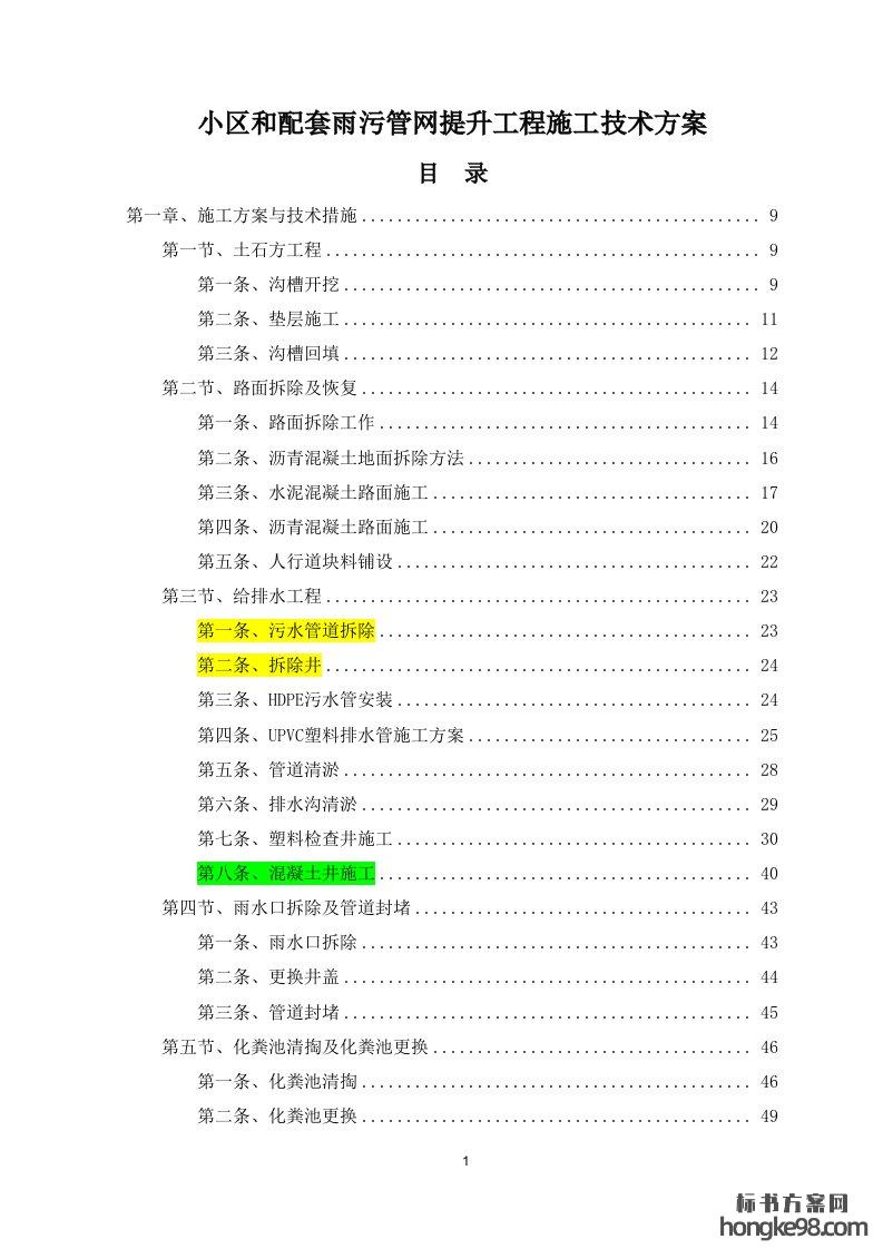 标题:小区和配套雨污管网提升工程施工技术方案(248页)