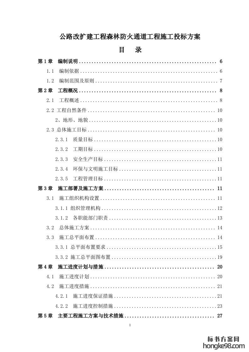 标题:公路改扩建工程森林防火通道工程施工标书投标方案(145页)
