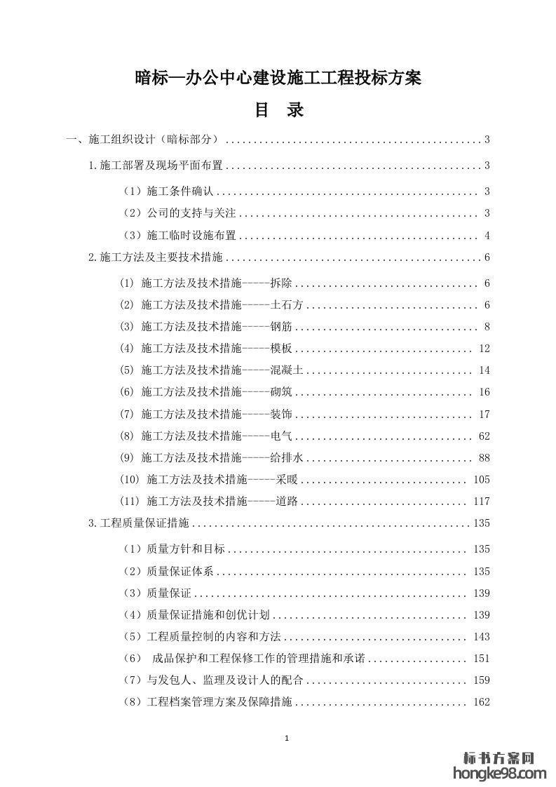 标题:办公中心建设施工工程标书投标方案(240页)