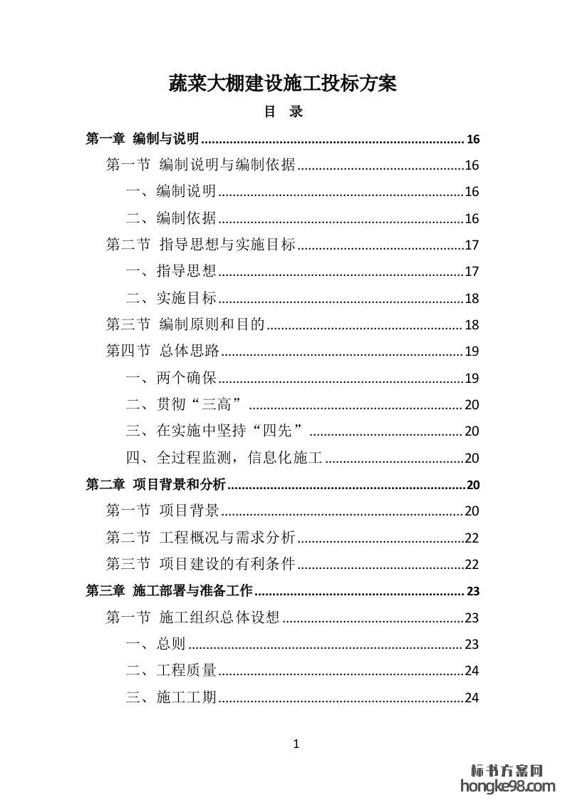 标题:蔬菜大棚建设施工标书投标方案(326页)