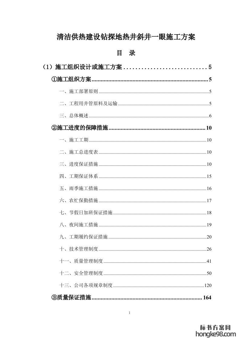 标题:清洁供热建设钻探地热井斜井一眼施工方案(465页)