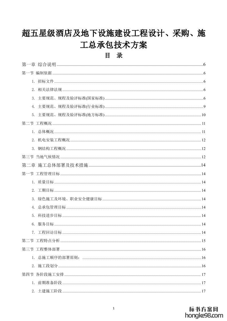 标题:精品超五星级酒店建设工程设计、采购、施工总承包投标技术方案(272页)