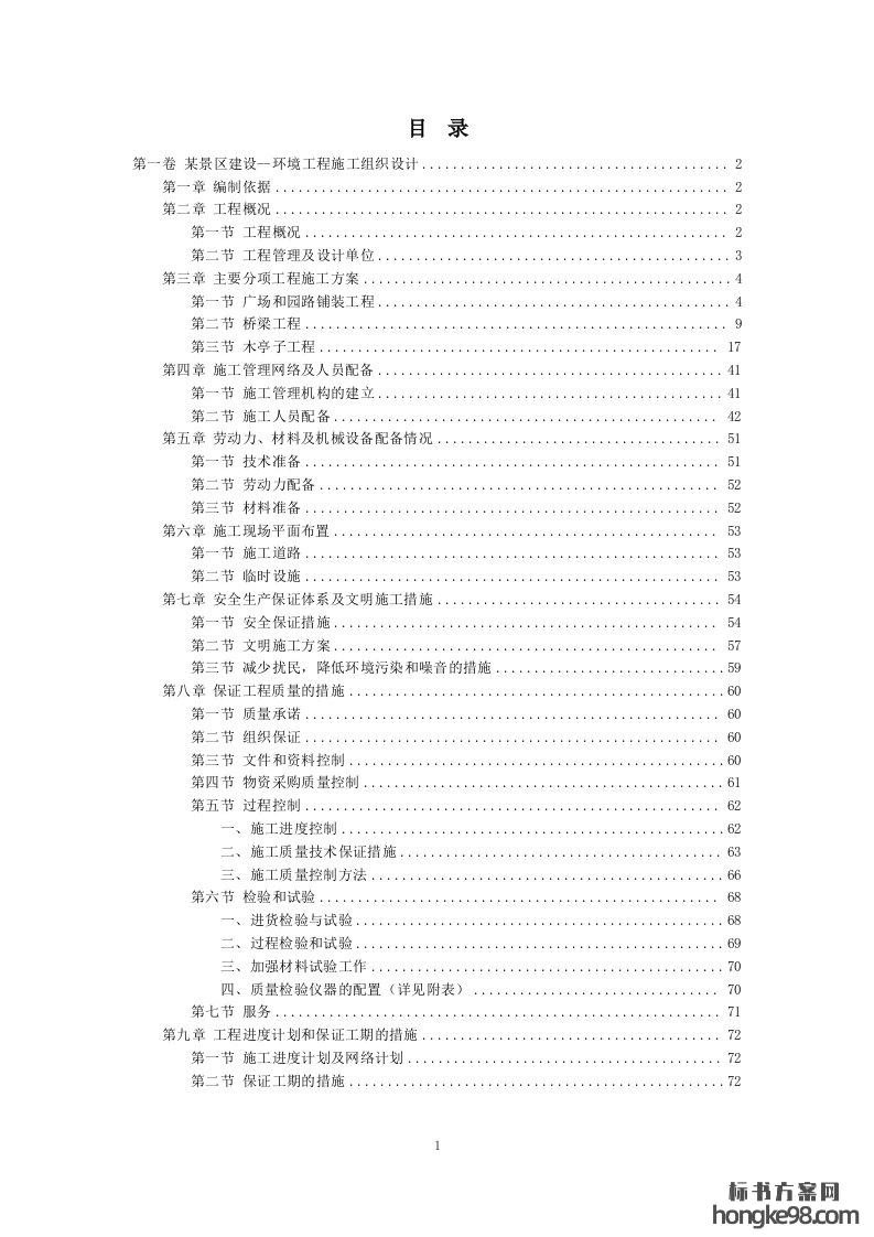 标题:某景区建设环境工程施工组织设计标书投标方案(75页)