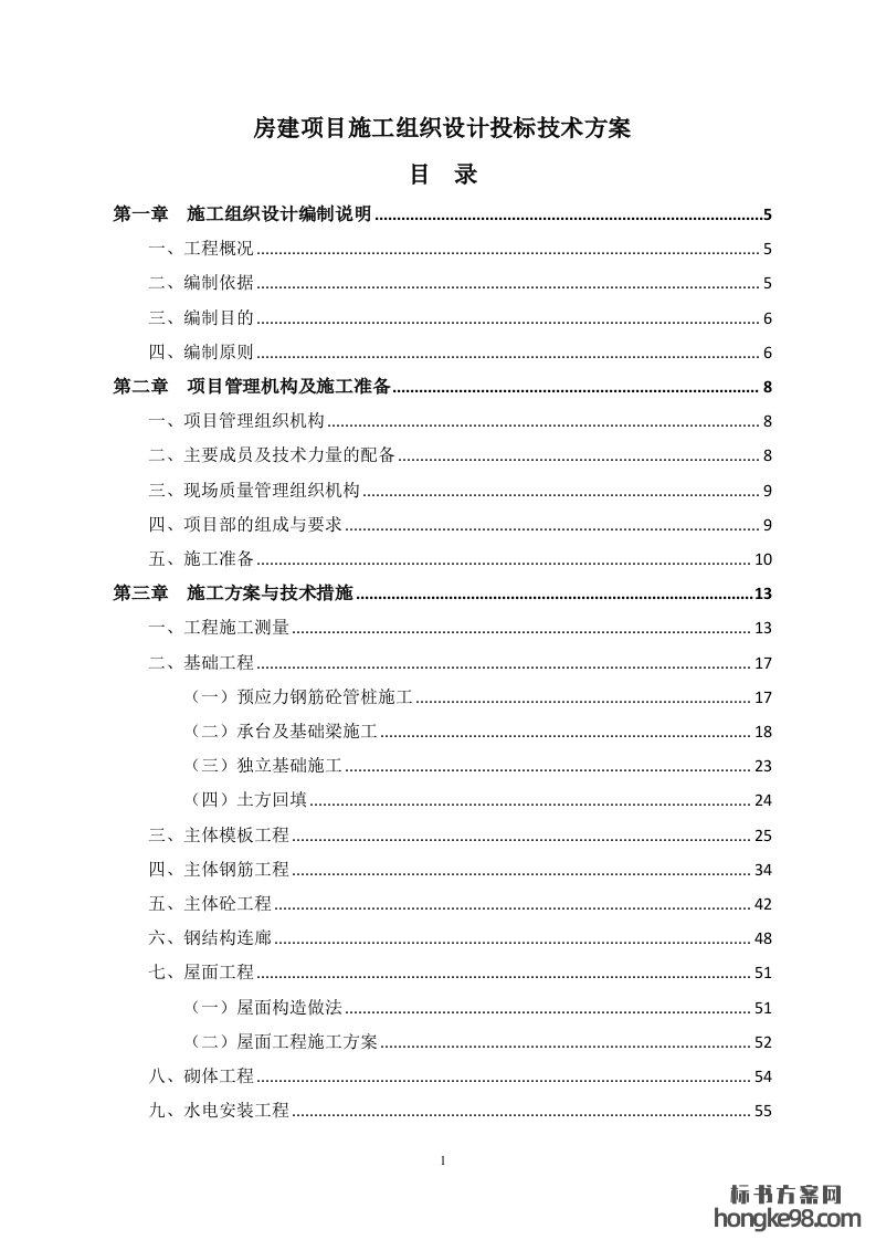 标题:房屋建设工程项目施工组织设计标书投标技术方案(185页)