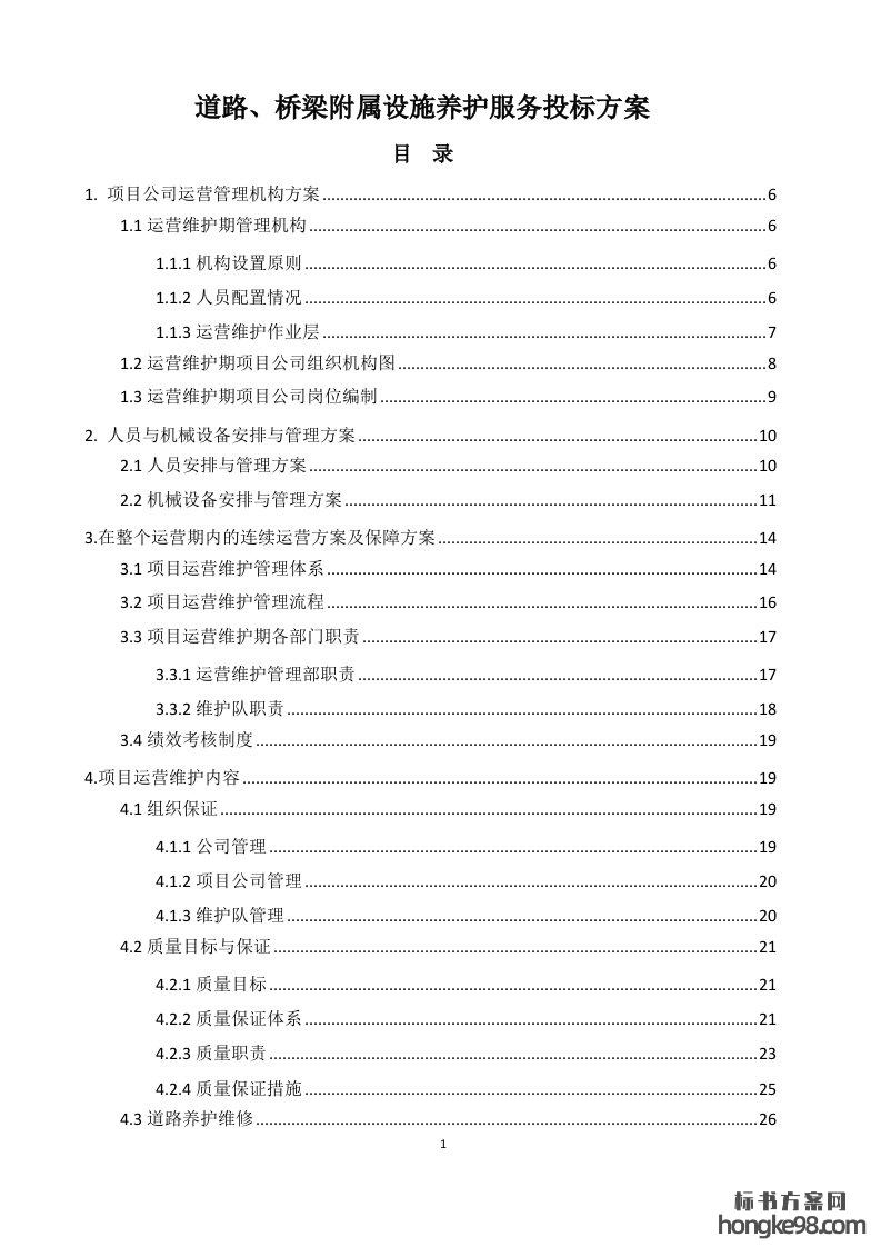 标题:道路、桥梁附属设施养护服务投标方案120页