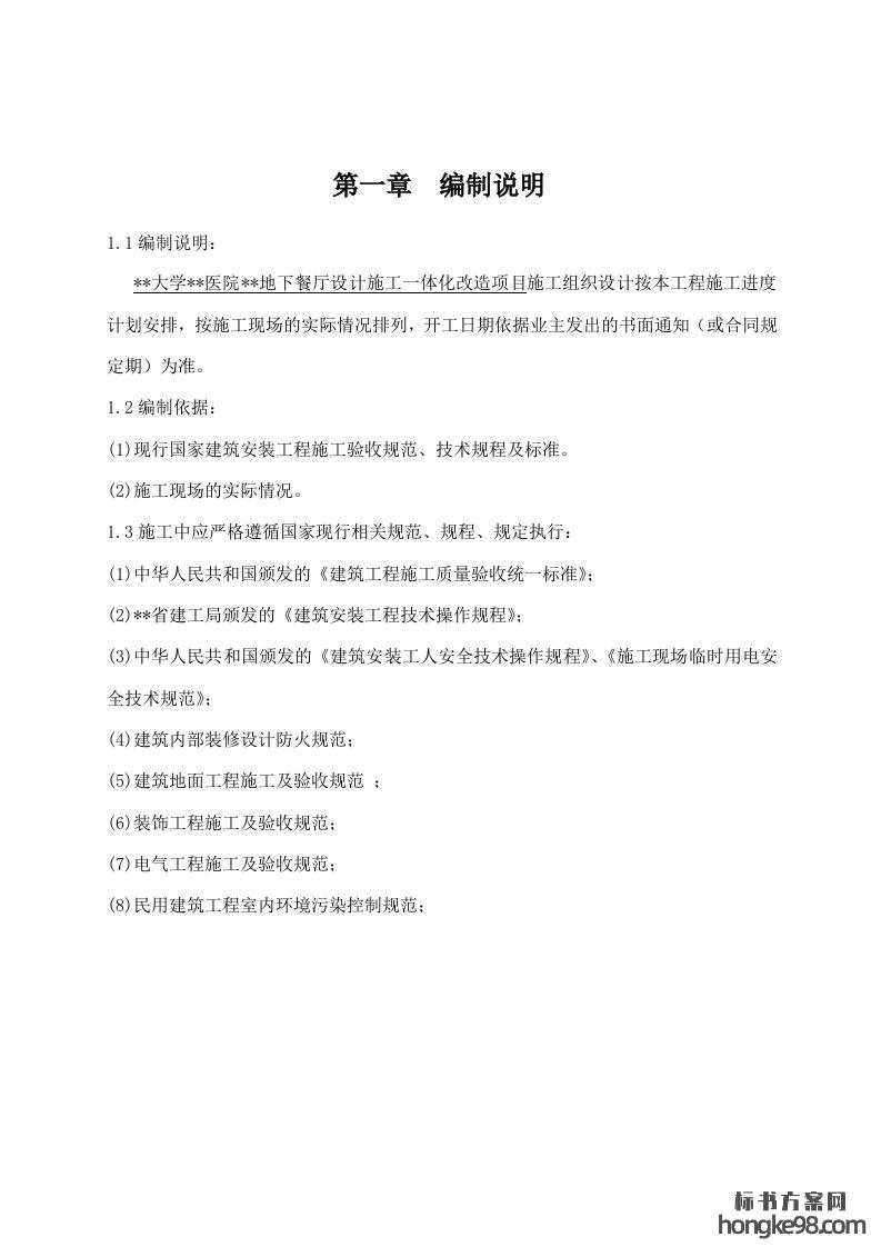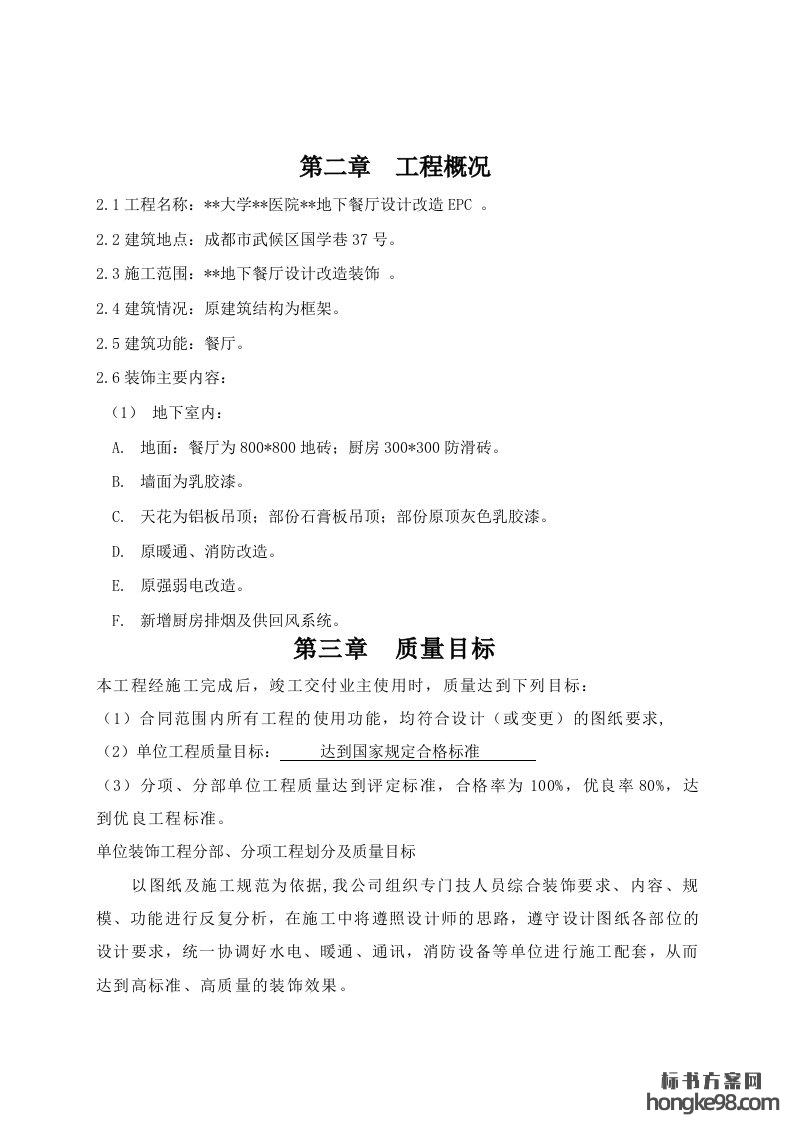 标题:地下餐厅EPC施工组织设计(158页)