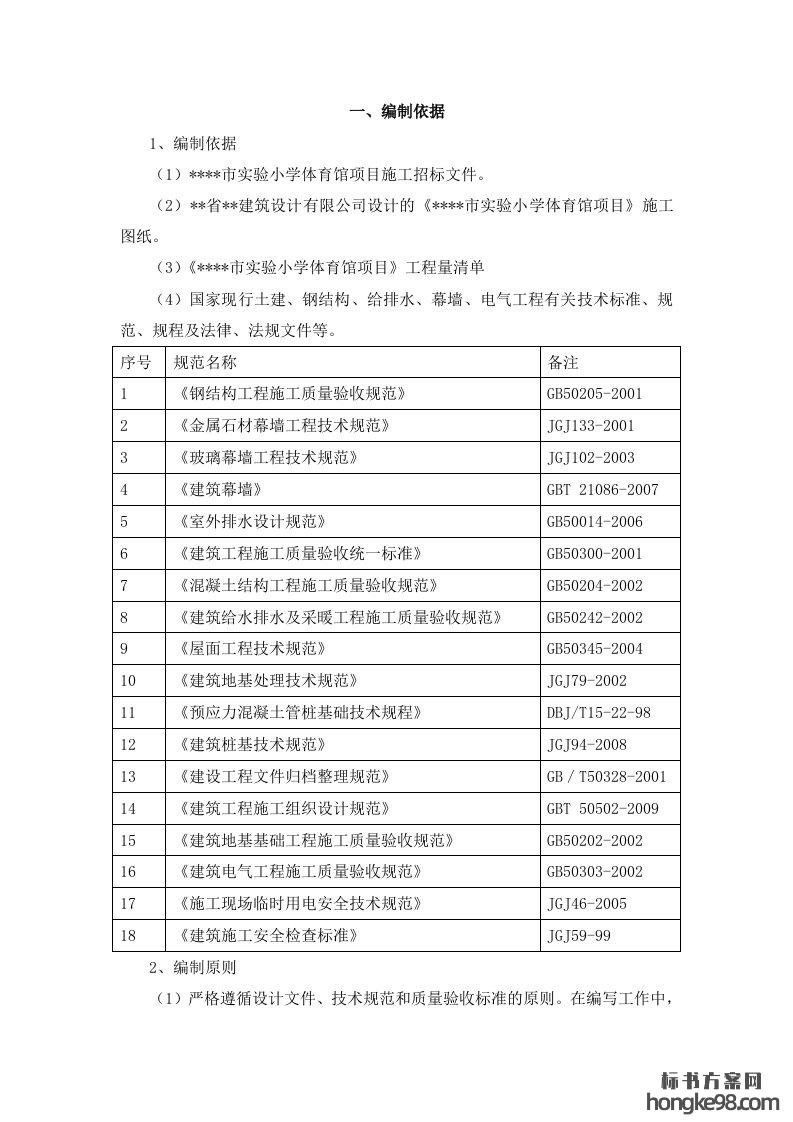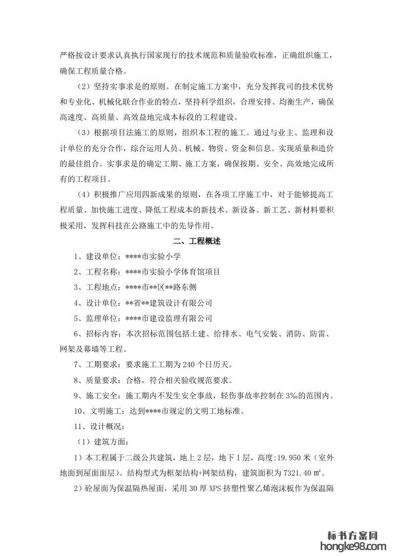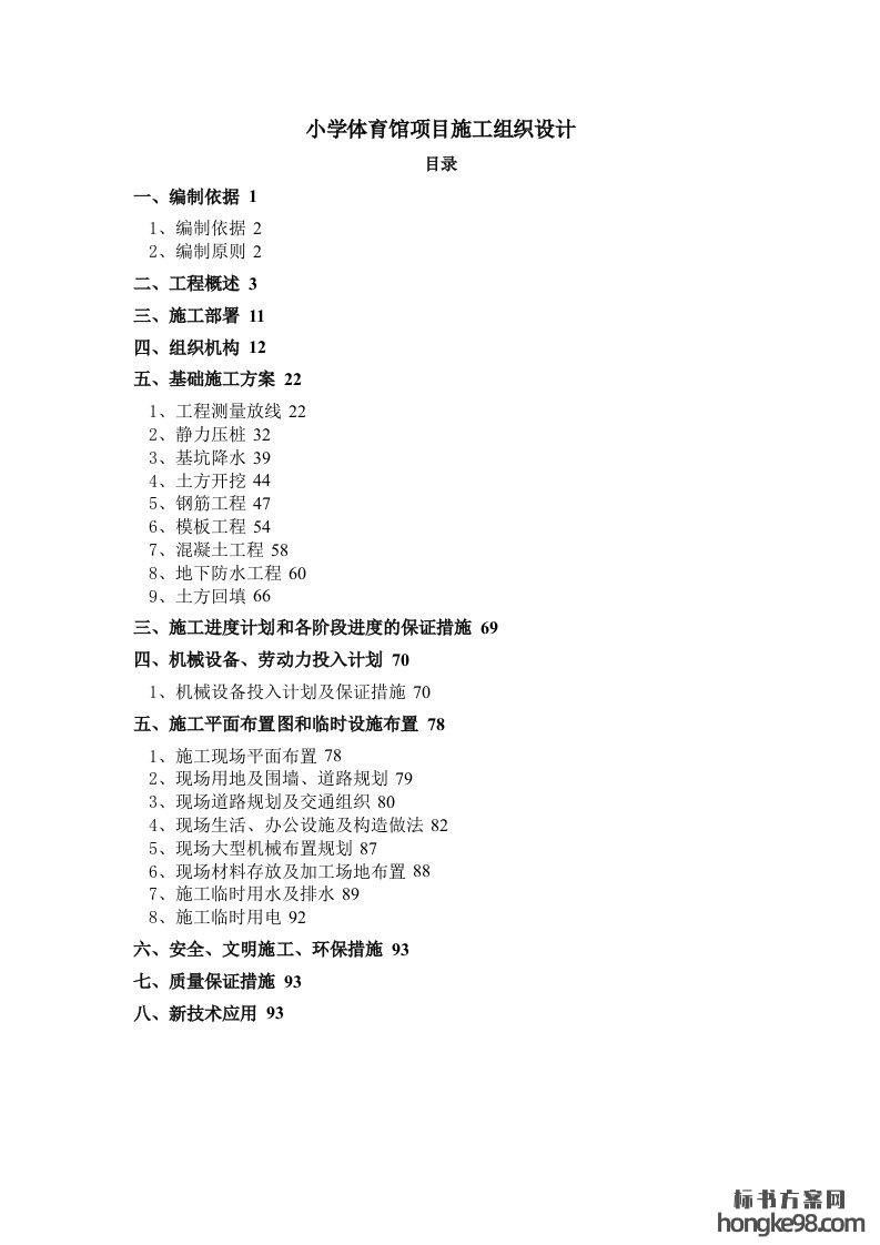 标题:小学体育馆项目工程施工组织设计技术标(93页)