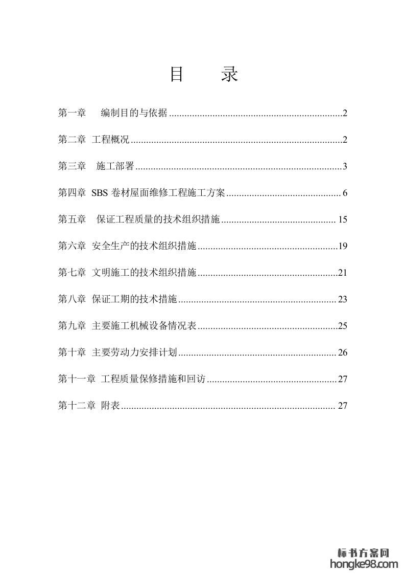 标题:屋面防水维修施工组织设计(30页)