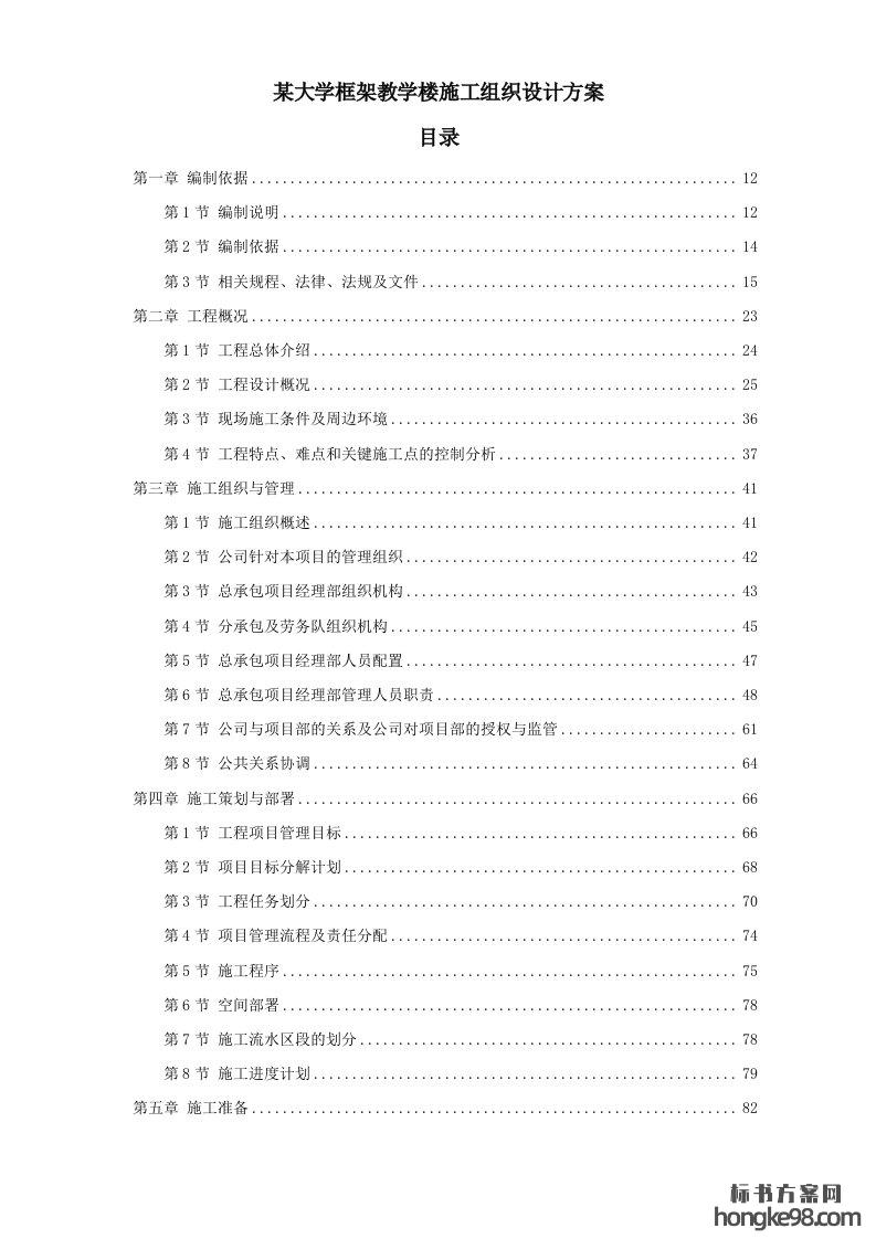 标题:某大学框架教学楼施工组织设计方案(513页)