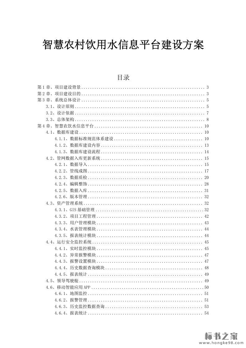 标题:智慧农村饮用水信息平台建设方案(72页)