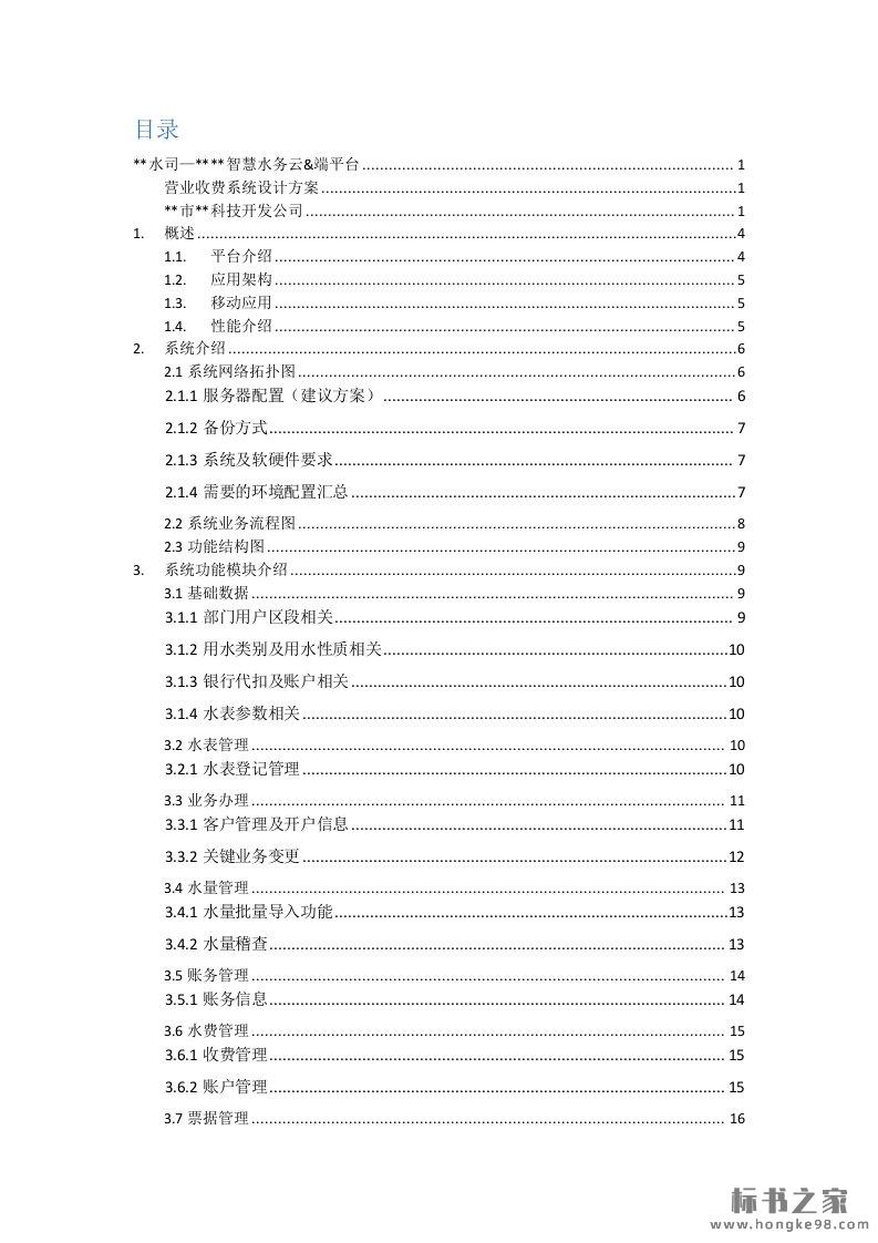 标题:智慧水务云端平台营业收费系统设计方案(22页)