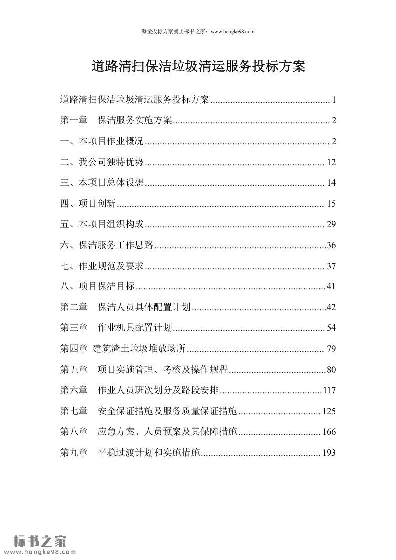 标题:道路清扫保洁垃圾清运服务投标方案(201页)