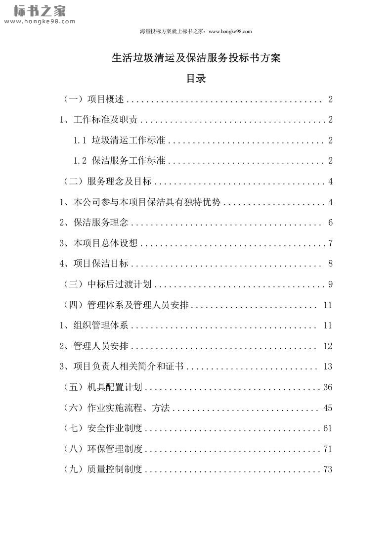 标题:生活垃圾清运及保洁服务投标书方案(85页)