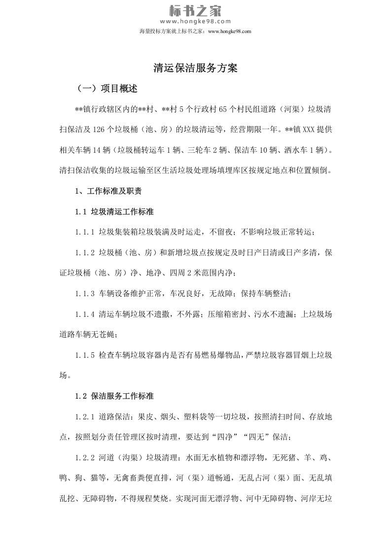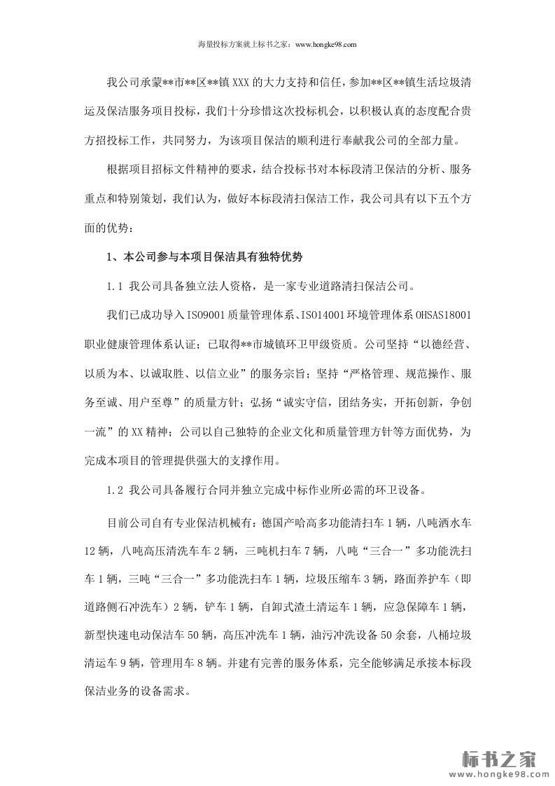 标题:生活垃圾清运及保洁服务项目投标书方案(81页)