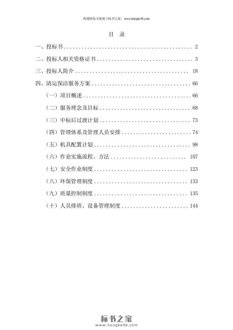 标题:生活垃圾清运及保洁服务项目投标书清运保洁服务方案(147页)