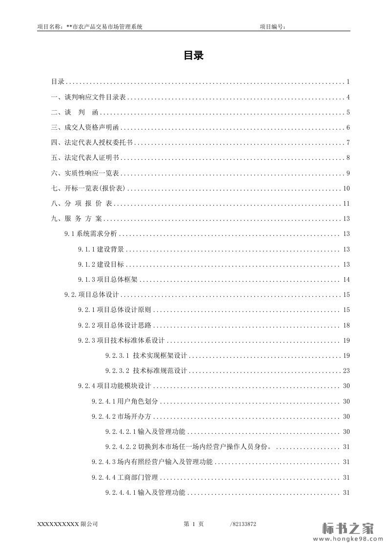 标题:市农产品交易市场管理系统投标文件技术方案(67页)