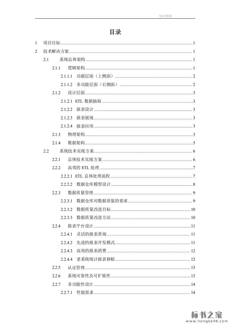 标题:数据仓库开发项目技术投标应标书(29页)