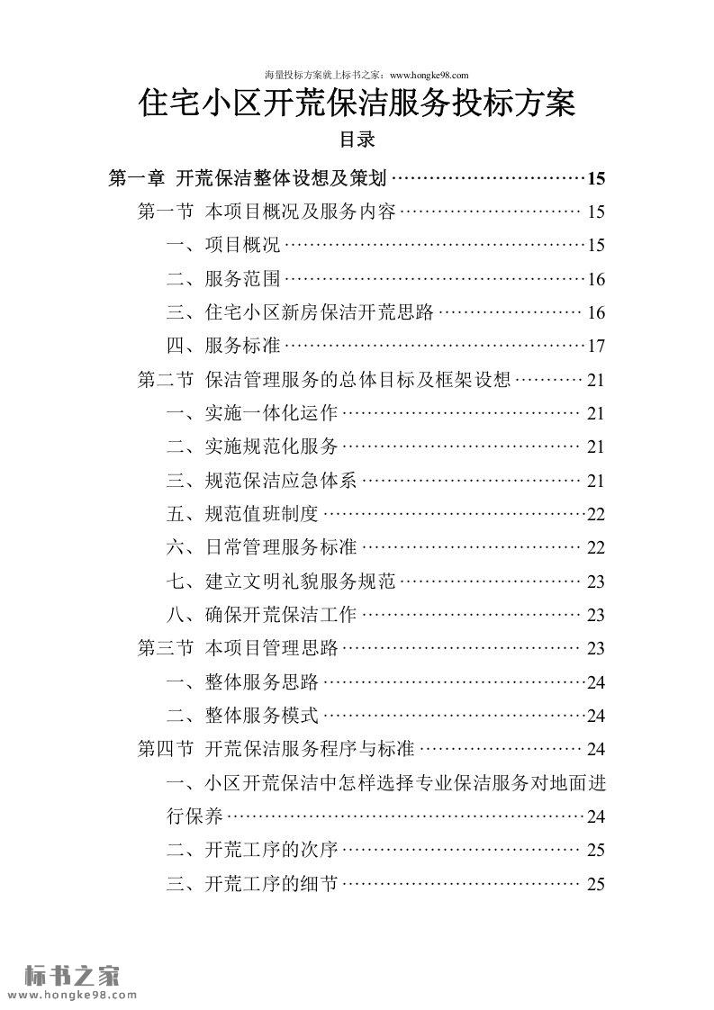 标题:住宅小区开荒保洁服务投标方案(381页)