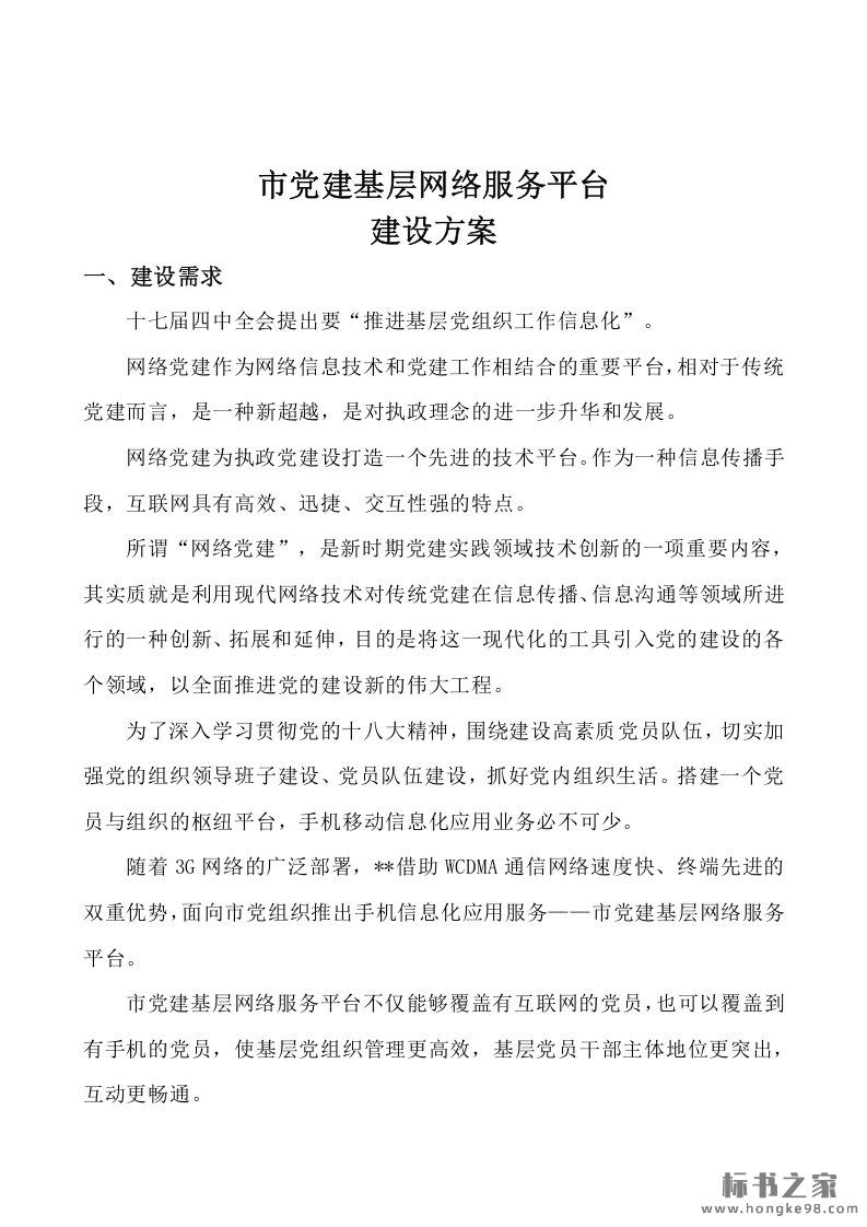 标题:市党建基层网络服务平台建设方案(14页)