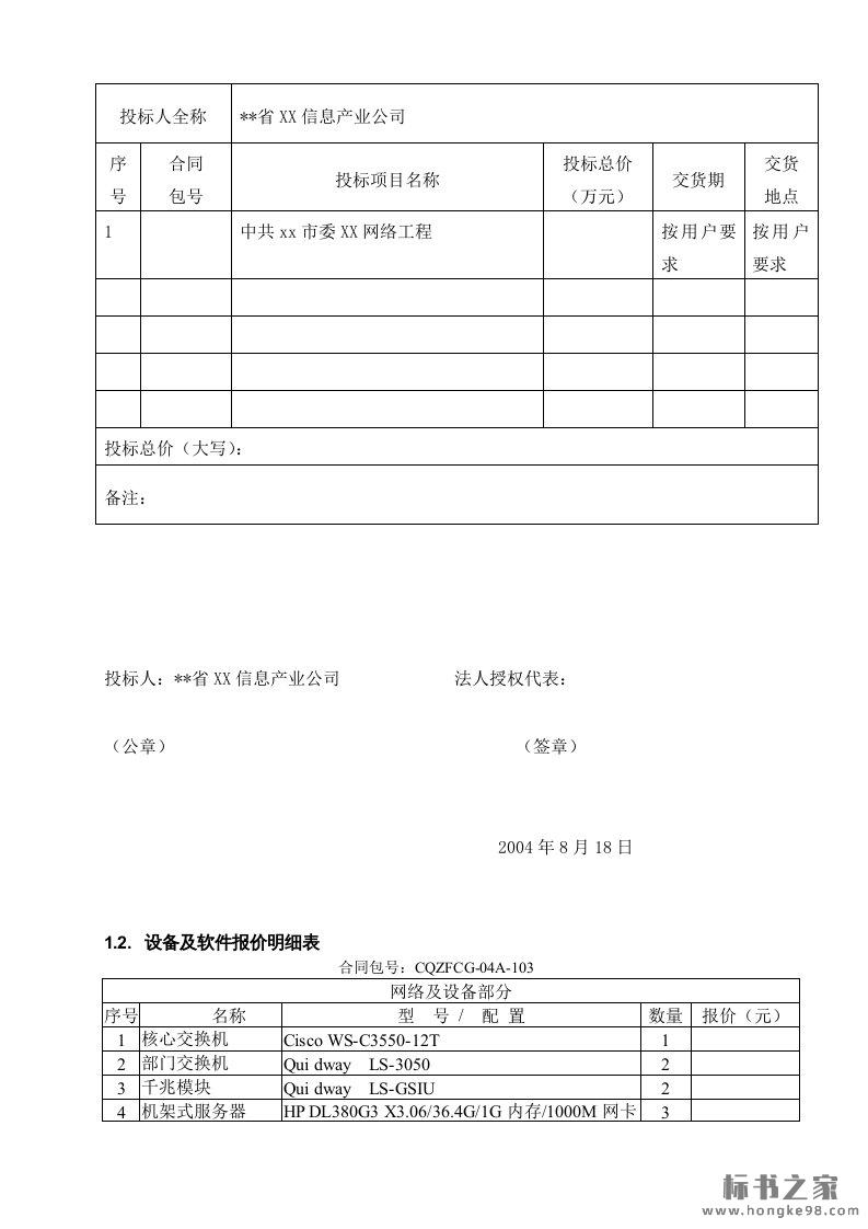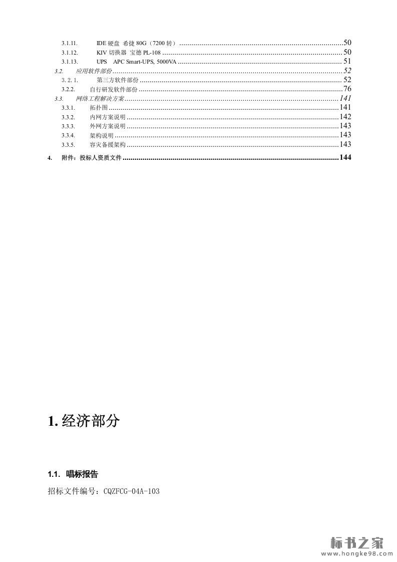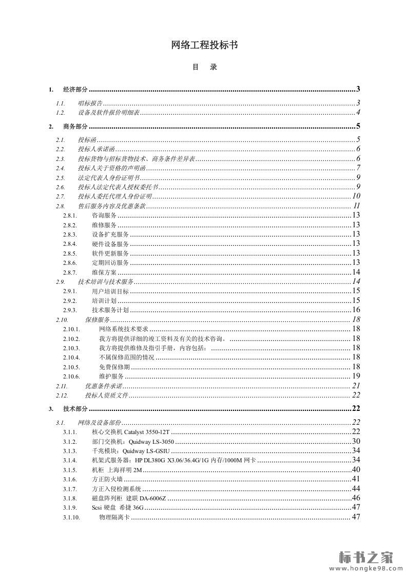 标题:网络工程机房设备采购投标书技术文件(146页)