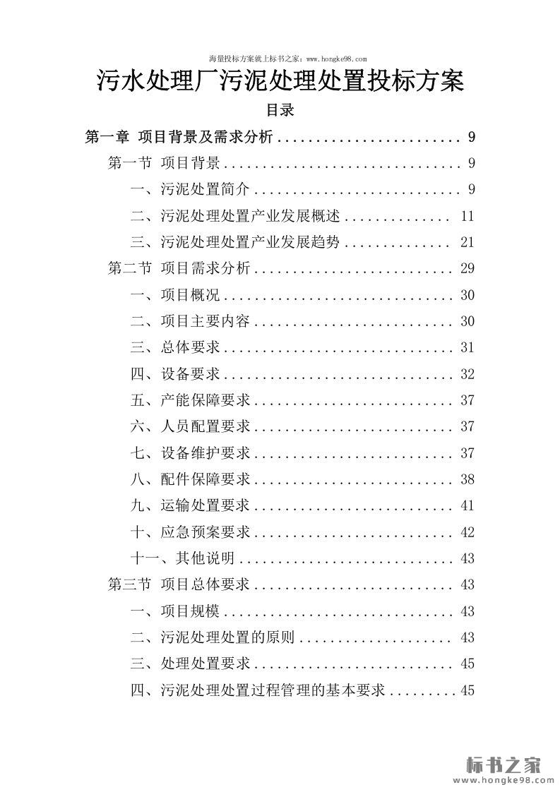标题:污水处理厂污泥处理处置投标方案(354页)