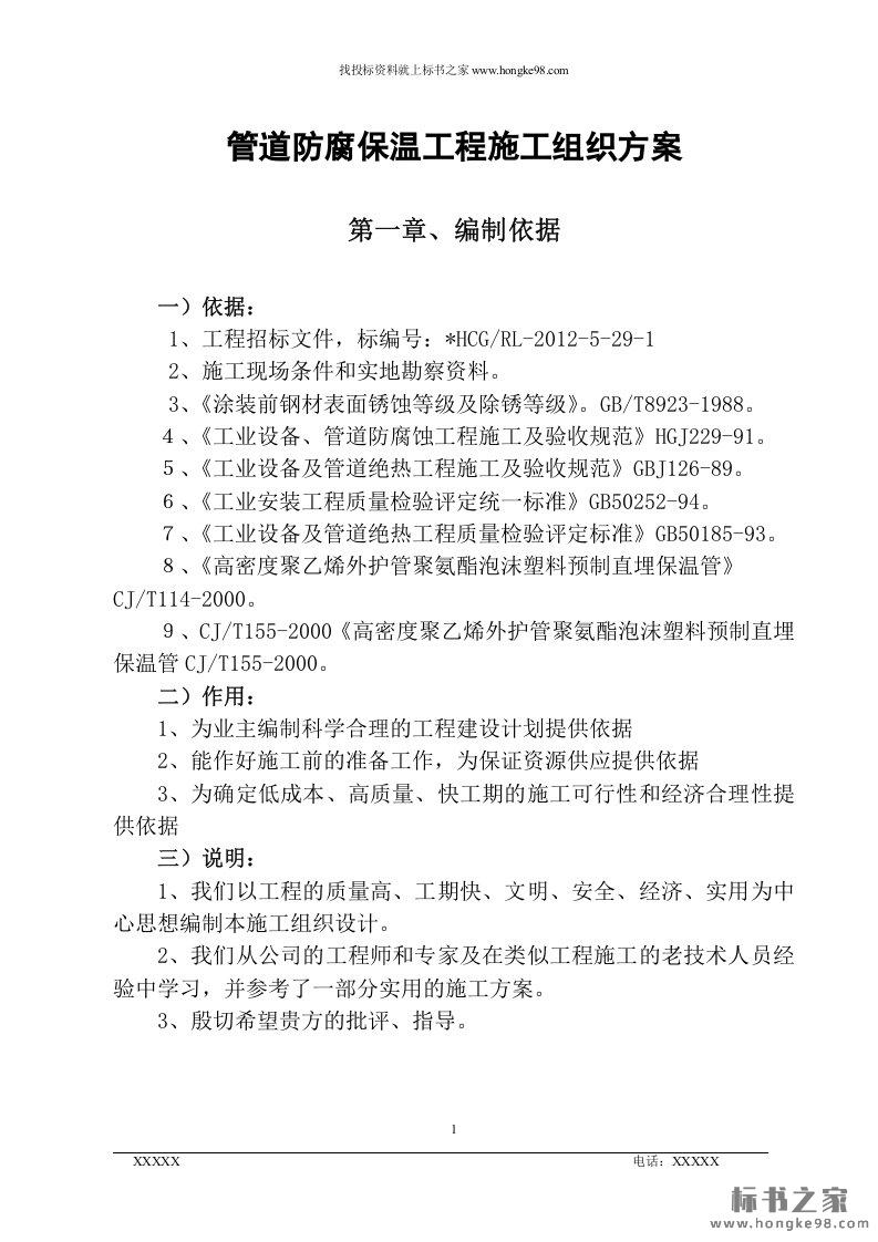 标题:管道防腐保温工程施工组织投标方案(14页)