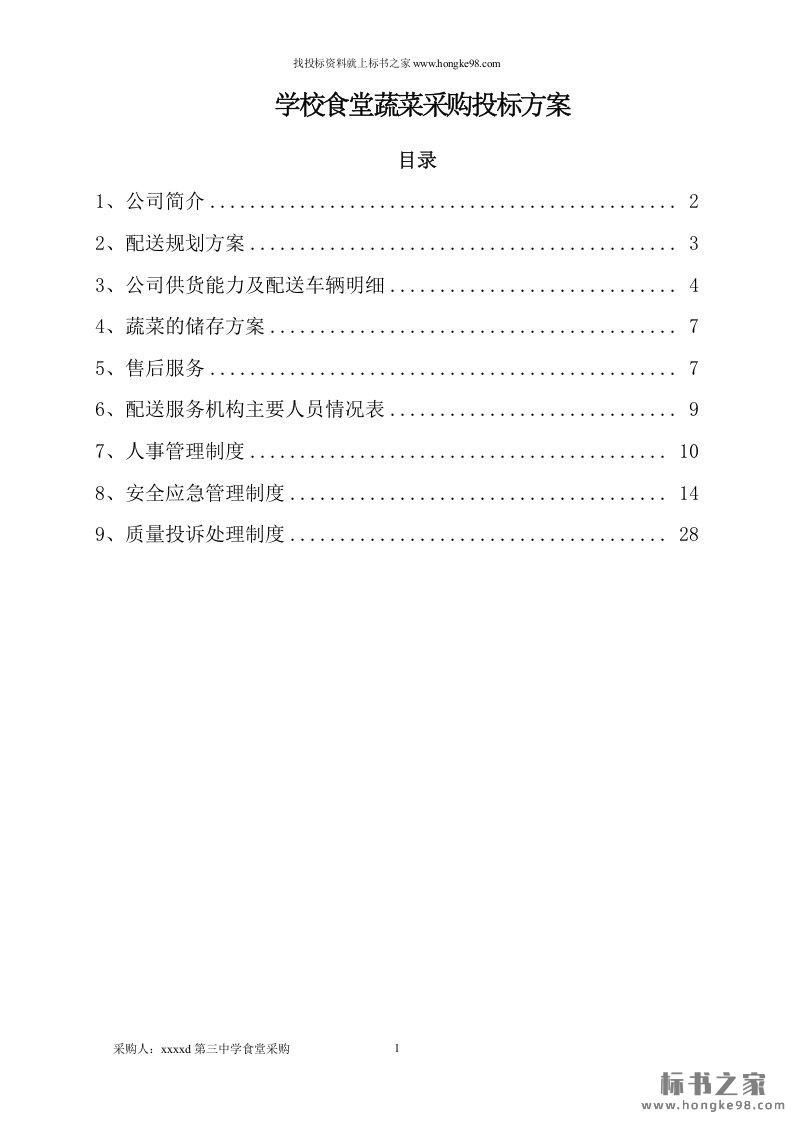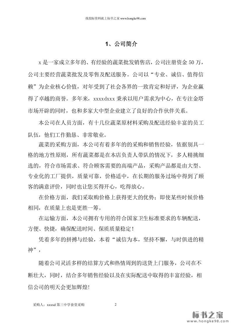 标题:食堂蔬菜采购配送公司的投标书(29页)
