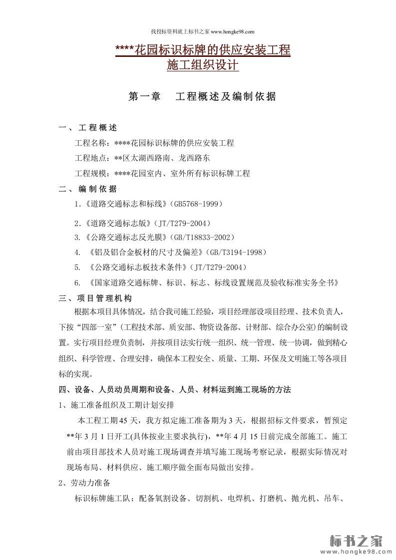 标题:标识标牌供应安装工程施工组织设计投标方案(31页)