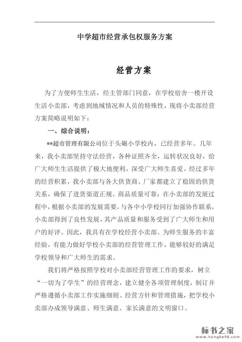 标题:学校(校园)生活超市经营承包权投标书方案(8页)