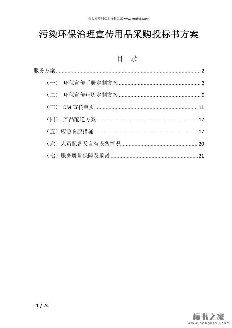 标题:污染环保治理宣传用品采购投标书方案(24页)