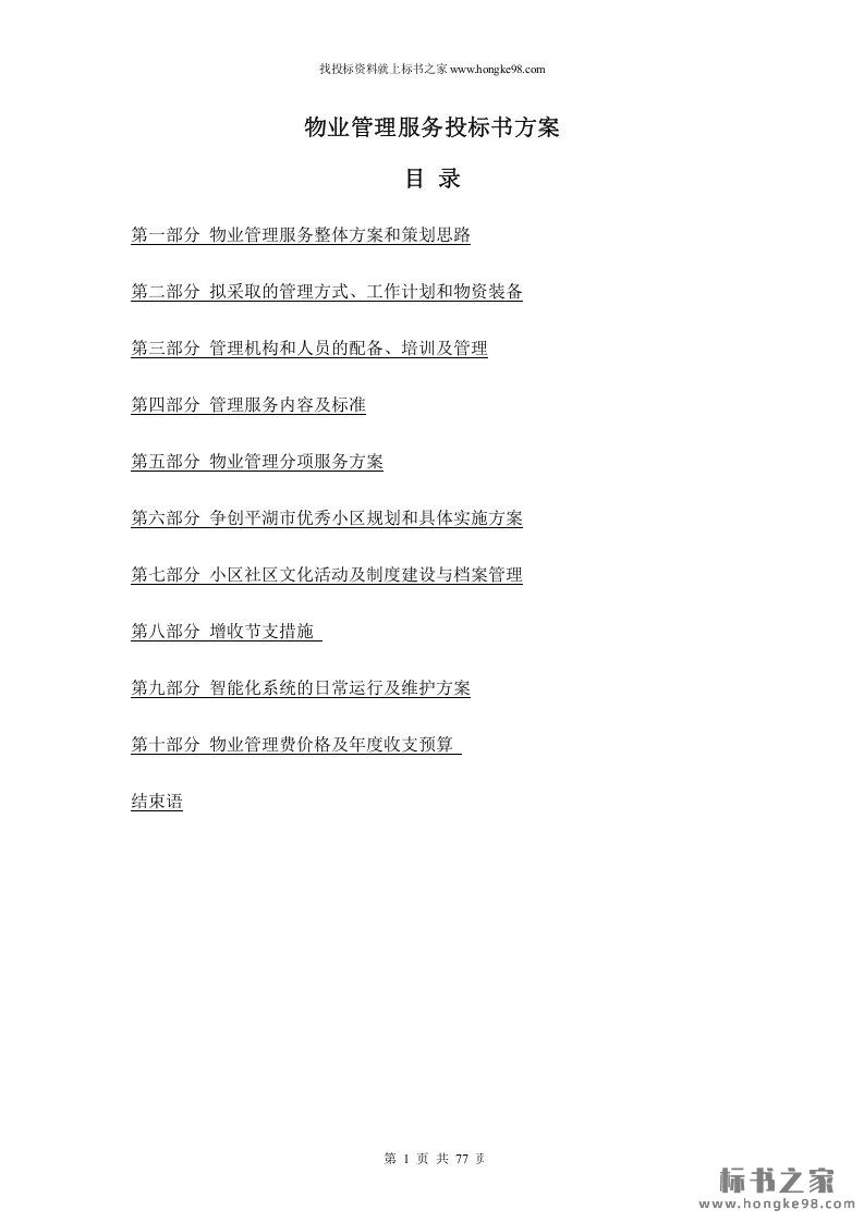 标题:物业管理服务投标书方案(77页)