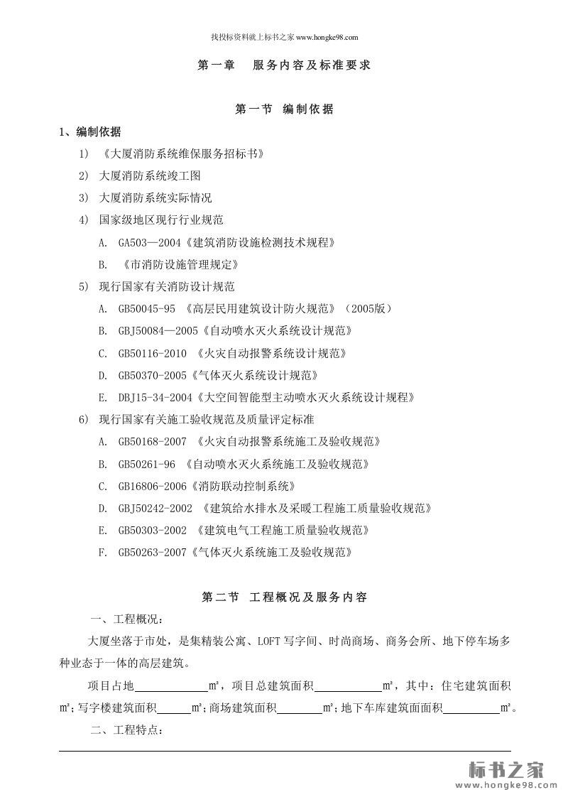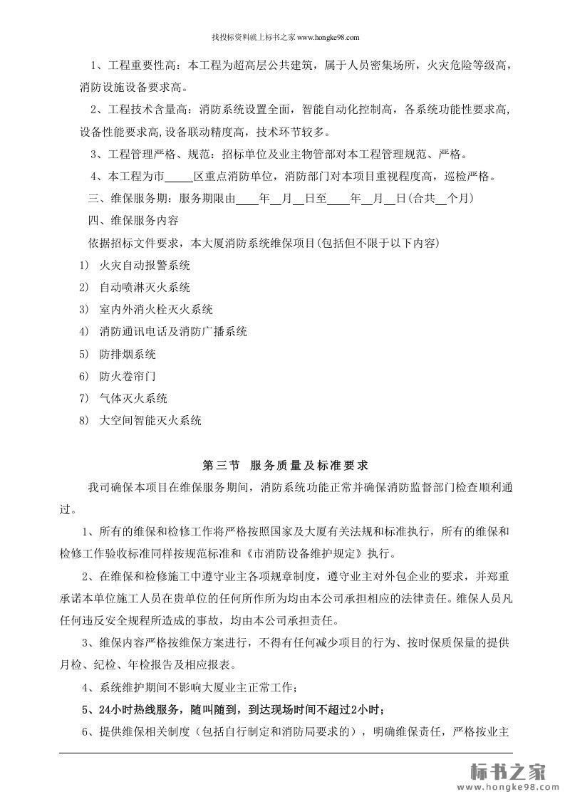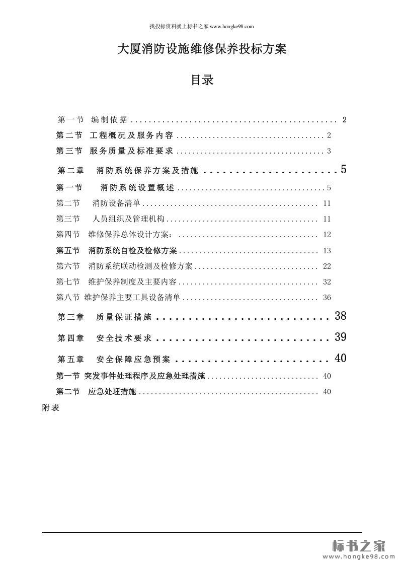 标题:大厦消防设施维修保养投标方案(51页)