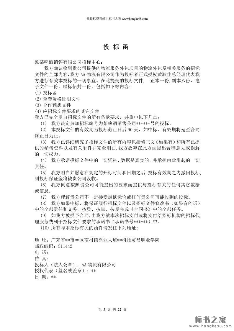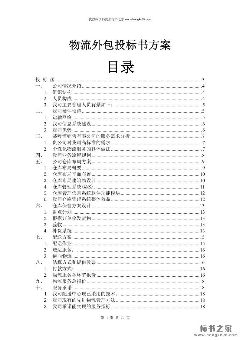 标题:第三方物流公司投标书方案(22页)