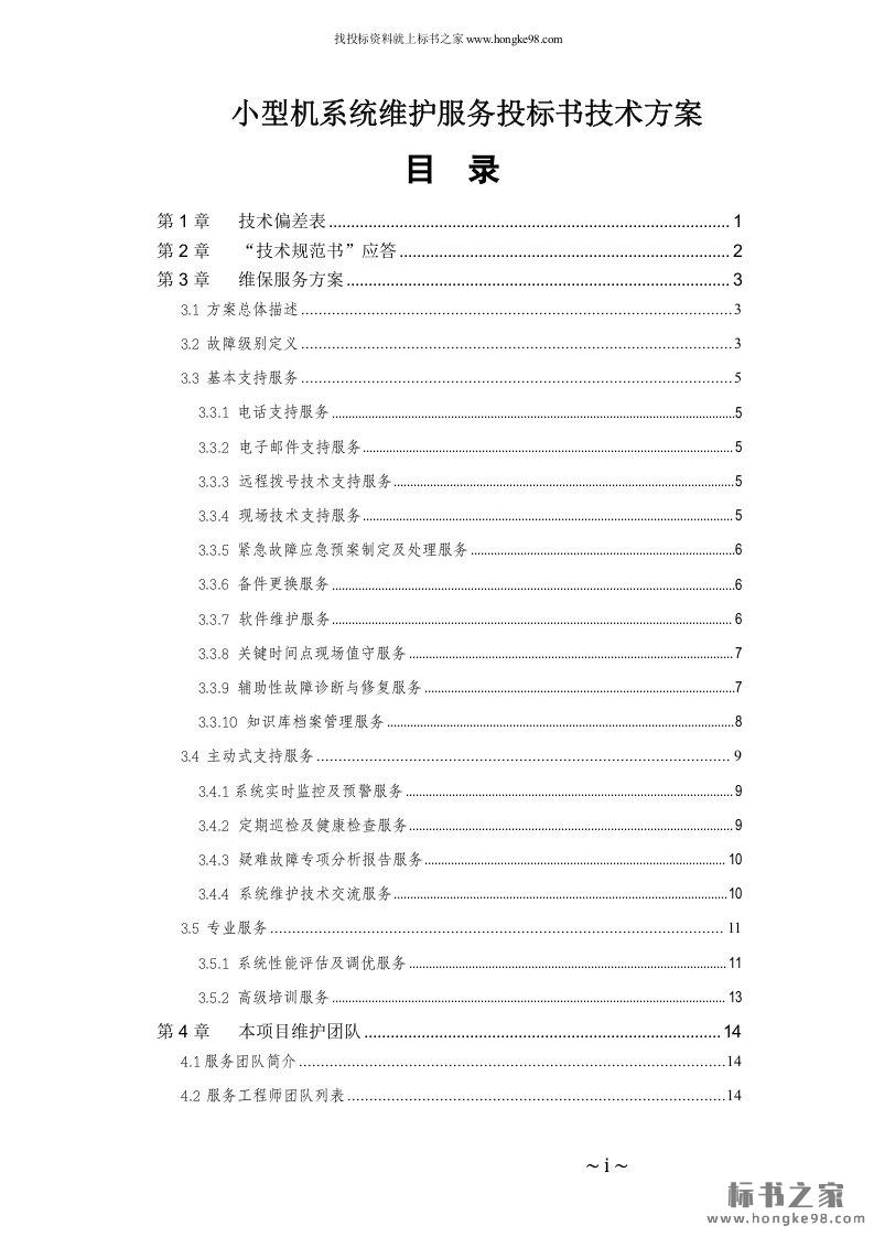 标题:小型机系统维护服务投标书技术方案(21页)