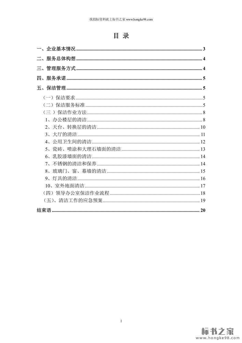 标题:某办公楼(写字楼)保洁服务投标方案(20页)