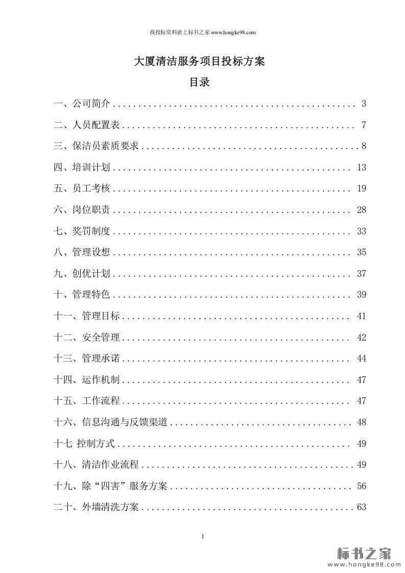 标题:大厦清洁服务项目投标方案(86页)